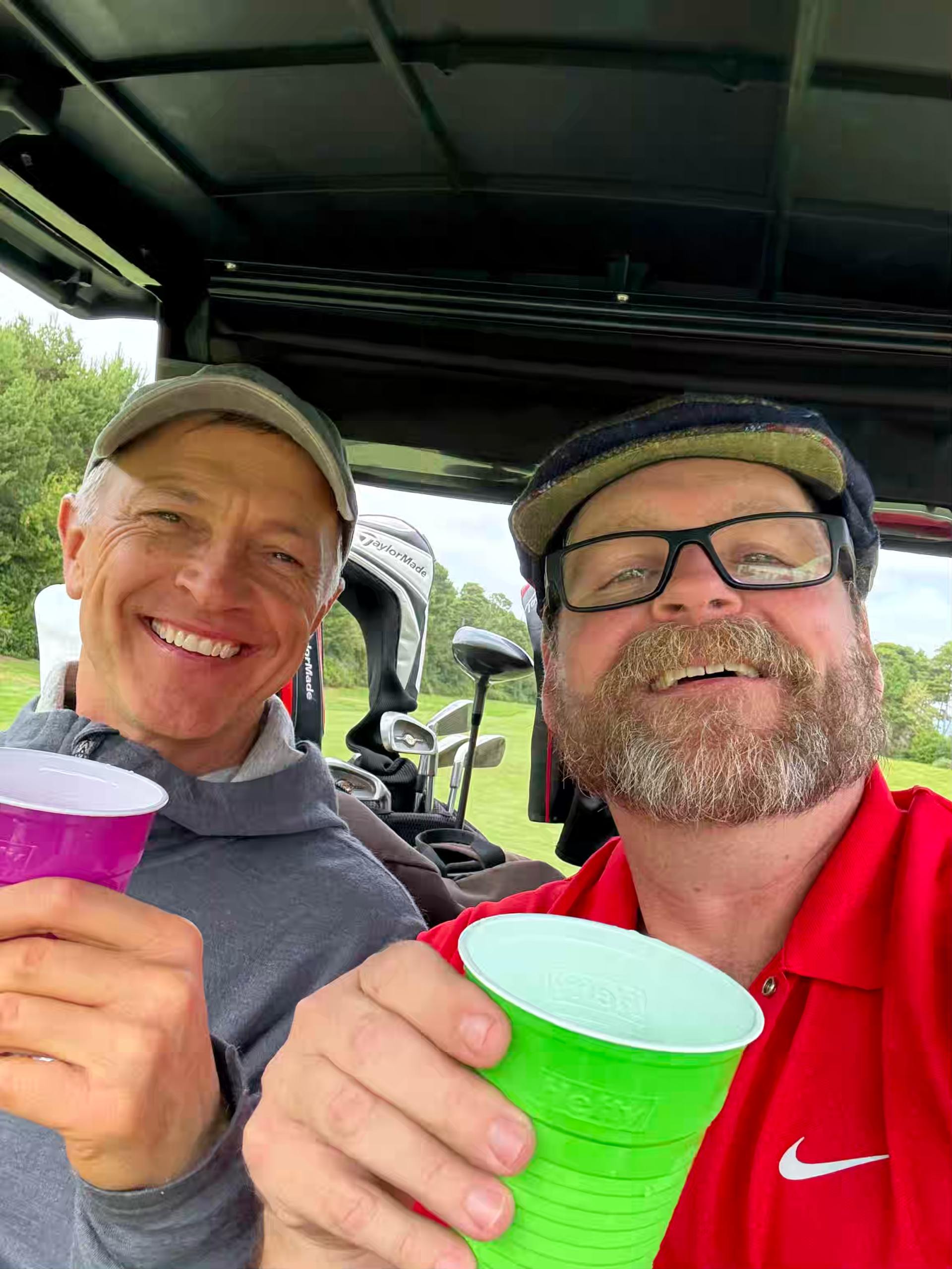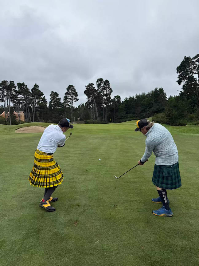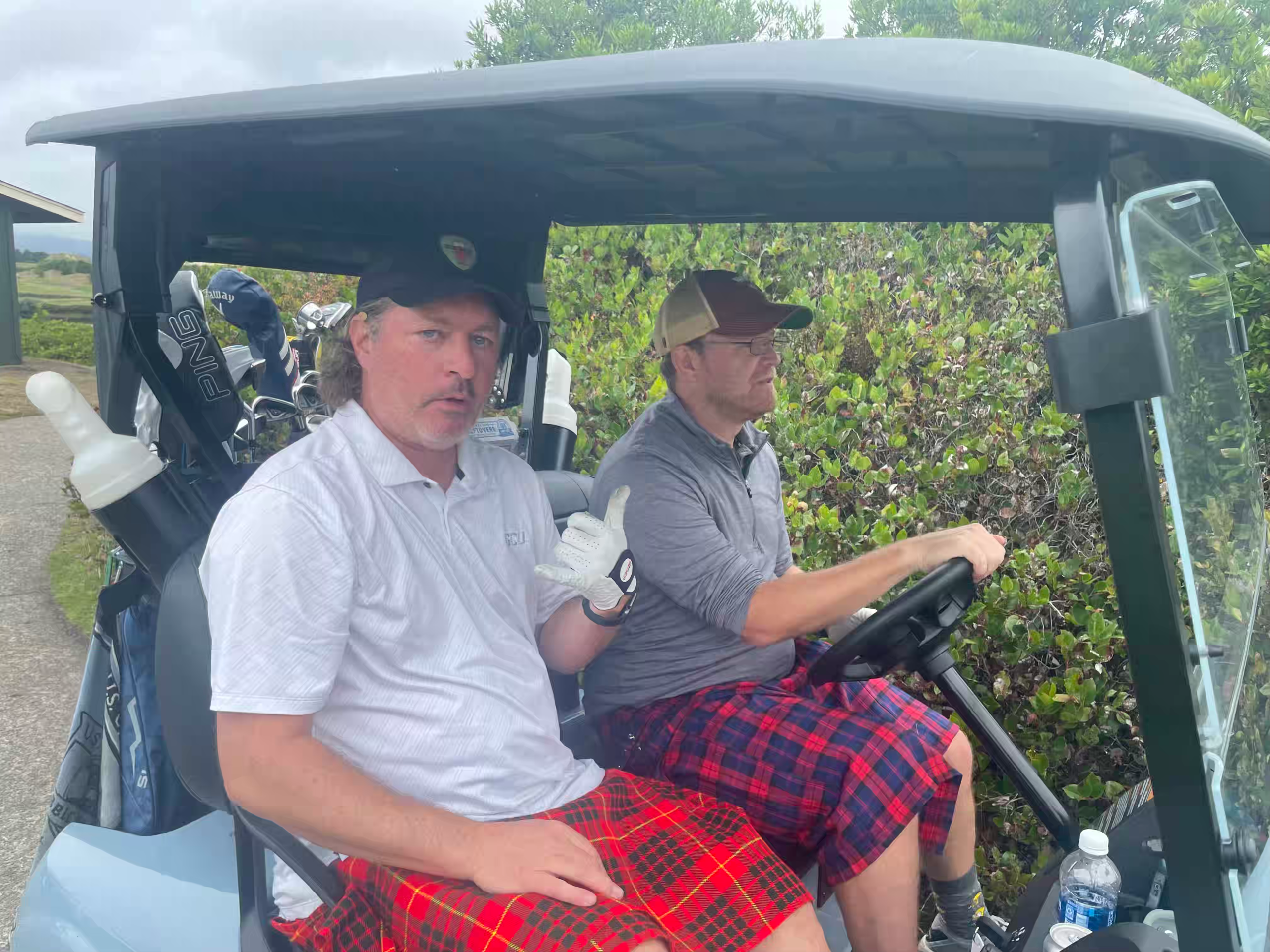 - Brian K & Justin V Refused to be separated for scramble #2 so they could watch football together in their cart. Shocker: productivity stayed low until the margaritas kicked in. After that? Still low, but at least they were having fun. #caitlynclark