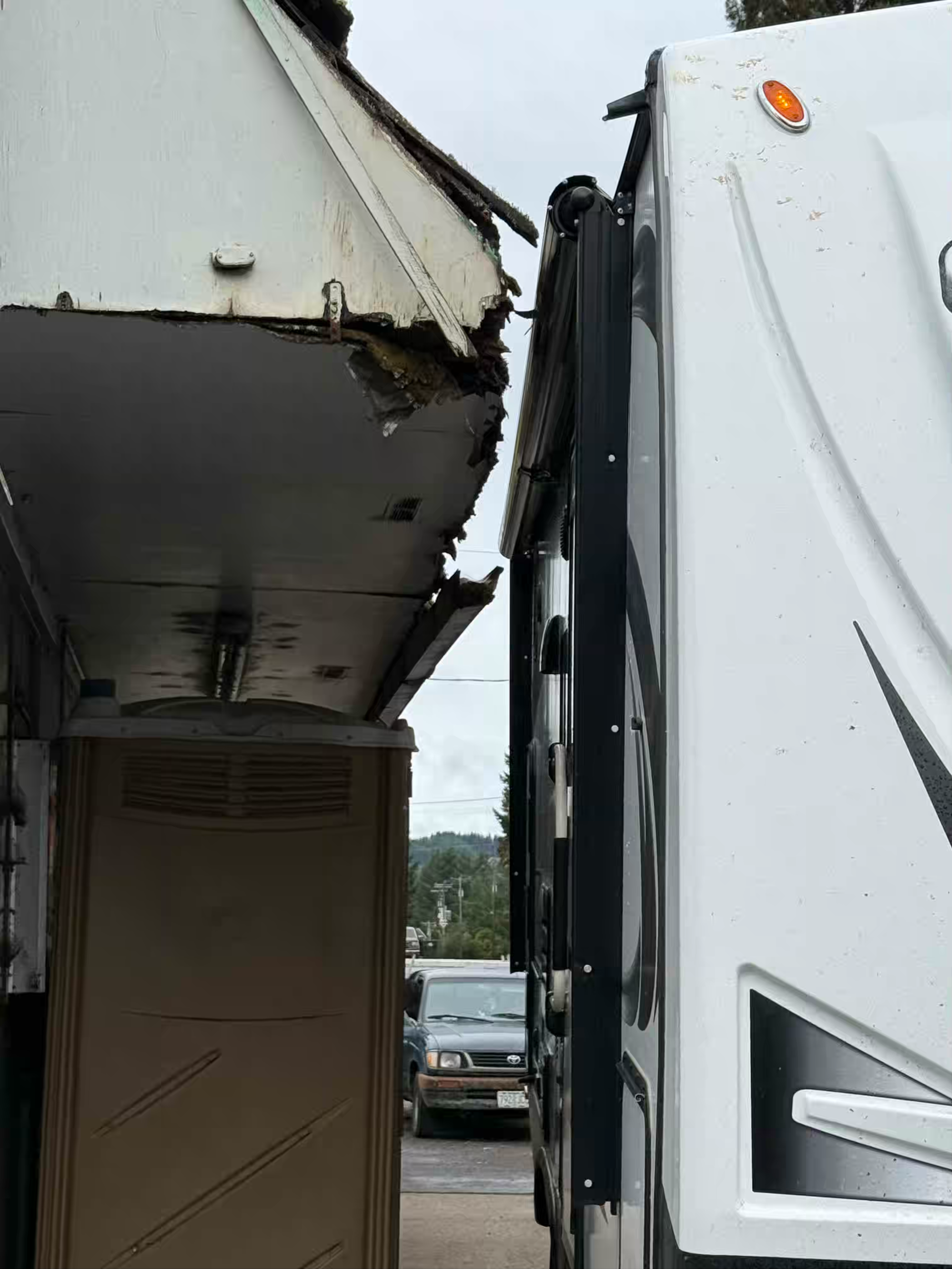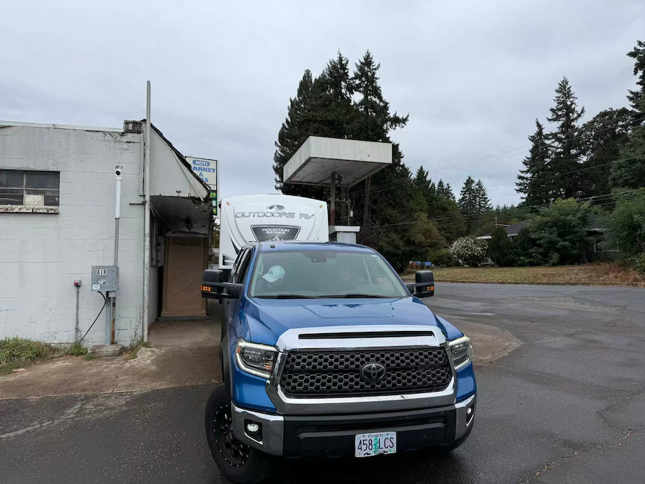- Jerry’s Deliverance Adventure – Gas stop in Noti turned into a horror movie: two tweakers claimed to be Jerry’s best friends. Meanwhile, his trailer barely escaped shaving the gas station post and roof by inches (see pics).