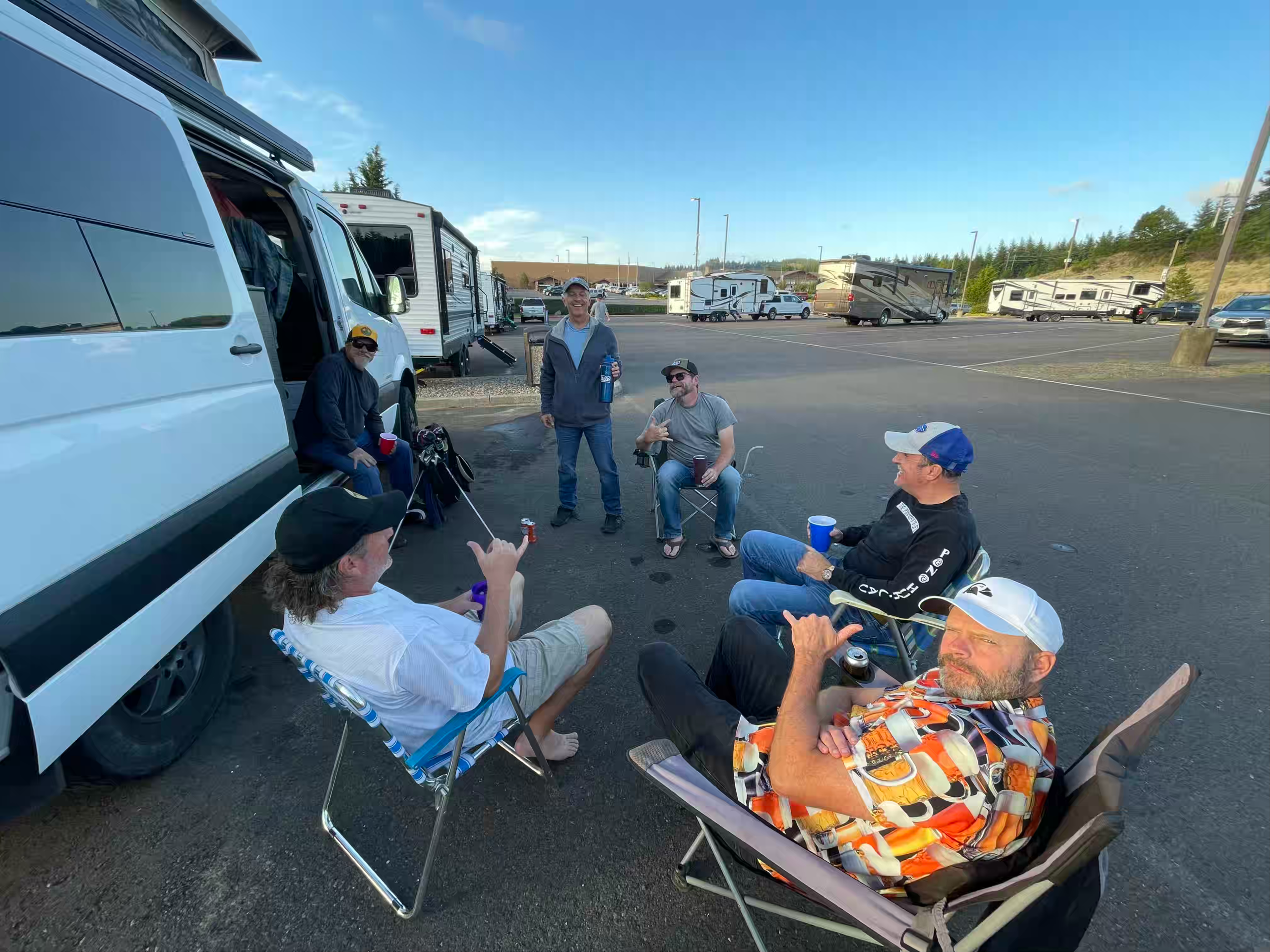 We played Sandpines (formerly Florence Golf Links) again and had epic weather for our 14 players. Most of us stayed in trailers, while the rest camped out at the casino. This year we mixed it up with two scrambles.