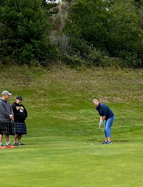 - Diane’s Margarita Shack (8th Hole) Diane once again cemented her legend status by serving up what may be the finest margaritas in Oregon. She and Beddy “helped” us putt, but just like our shots, nothing actually dropped. 🤣